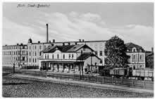 weiteren 500 Metern war der Stadtbahnhof in einer Höhe von 670 Meter über NN erreicht. Von diesem Bahnhof aus liefen je ein Gleis zurück in die oben genannte Spinnerei, in den größten Ascher Textilbetrieb Christ. Geipel´s Söhne, in den Schlachthof sowie zum ca. 200 Meter entfernten Heizhaus. Das Heizhaus diente nicht nur zum Vorwärmen der Lokomotiven, es war auch als Werkstätte zur Überholung derselben eingerichtet. Direkt an den Bahnhof anschließend führte ein Gleis auf eine zwei Meter hohe und ca. 150 Meter lange Rampe. Dort konnten die Kohlen aus den Waggons bequem in die Pferdefuhrwerke verladen werden.